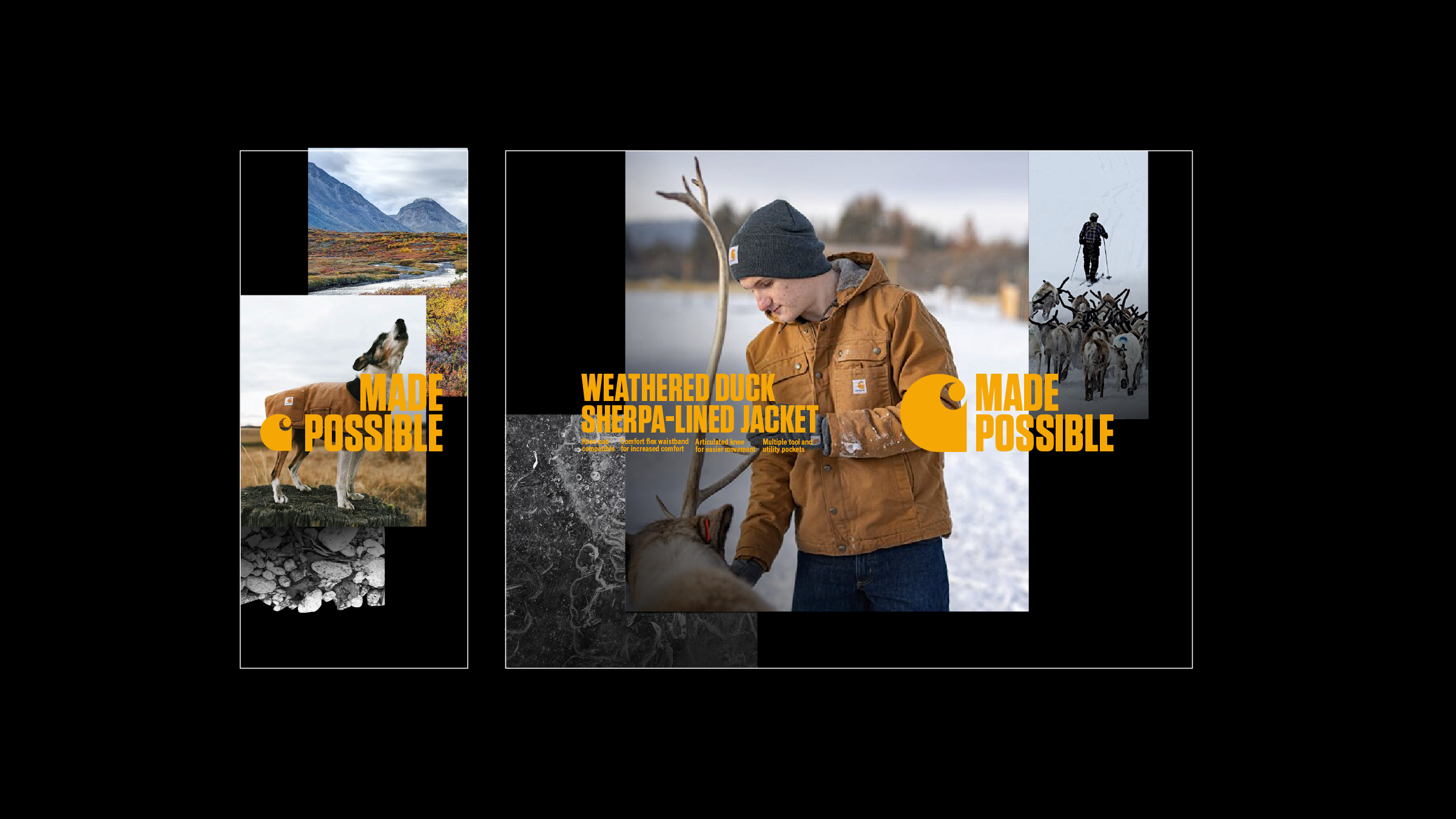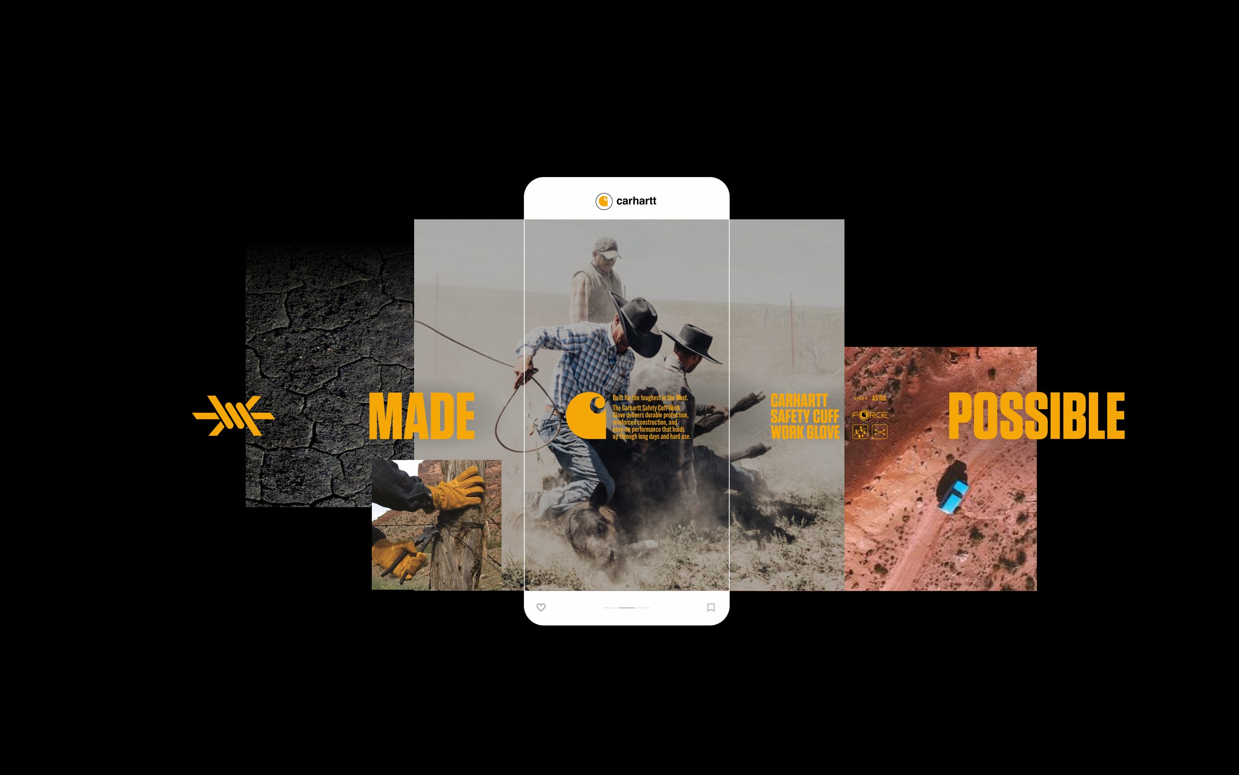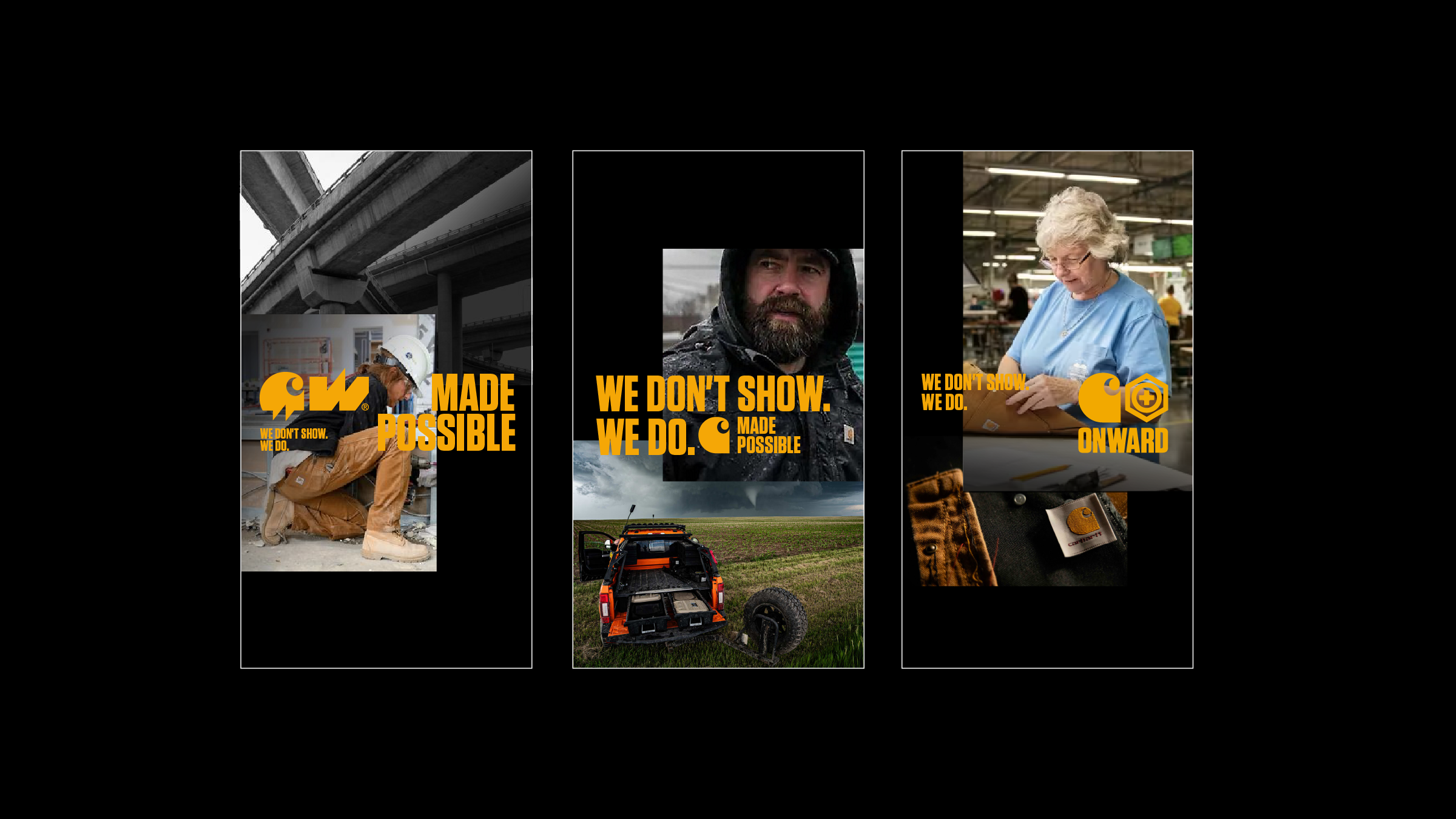 The visual language is rooted in the world of work—where things are made to be used, not over-explained. People, places, and materials become the building blocks of the story. The system’s structure allows multiple stories to coexist while staying true to Carhartt.