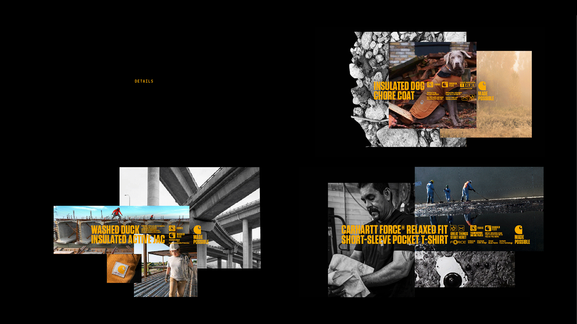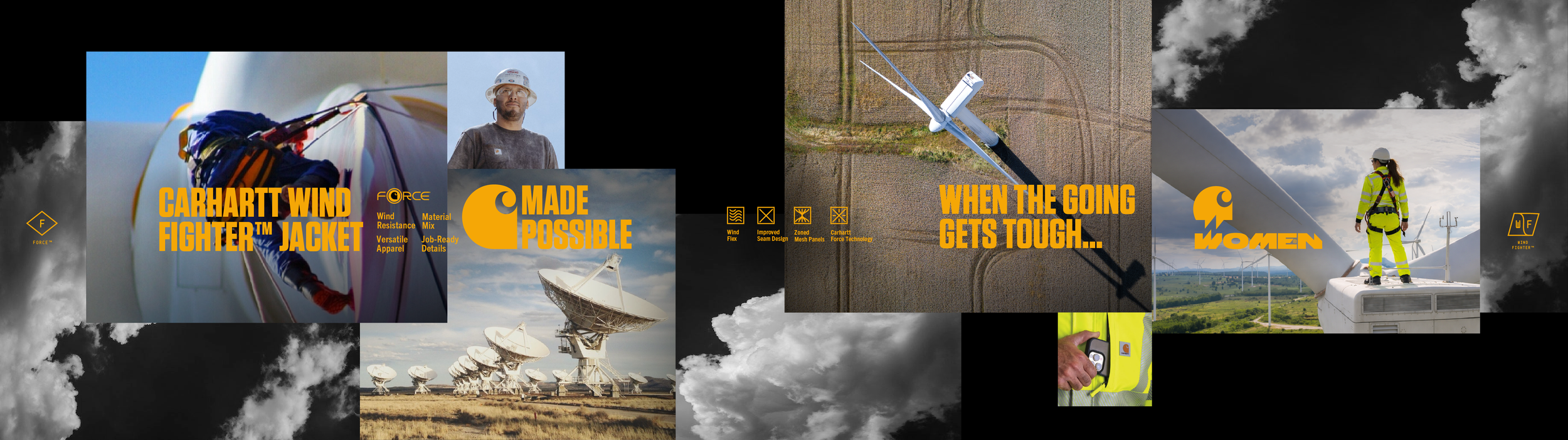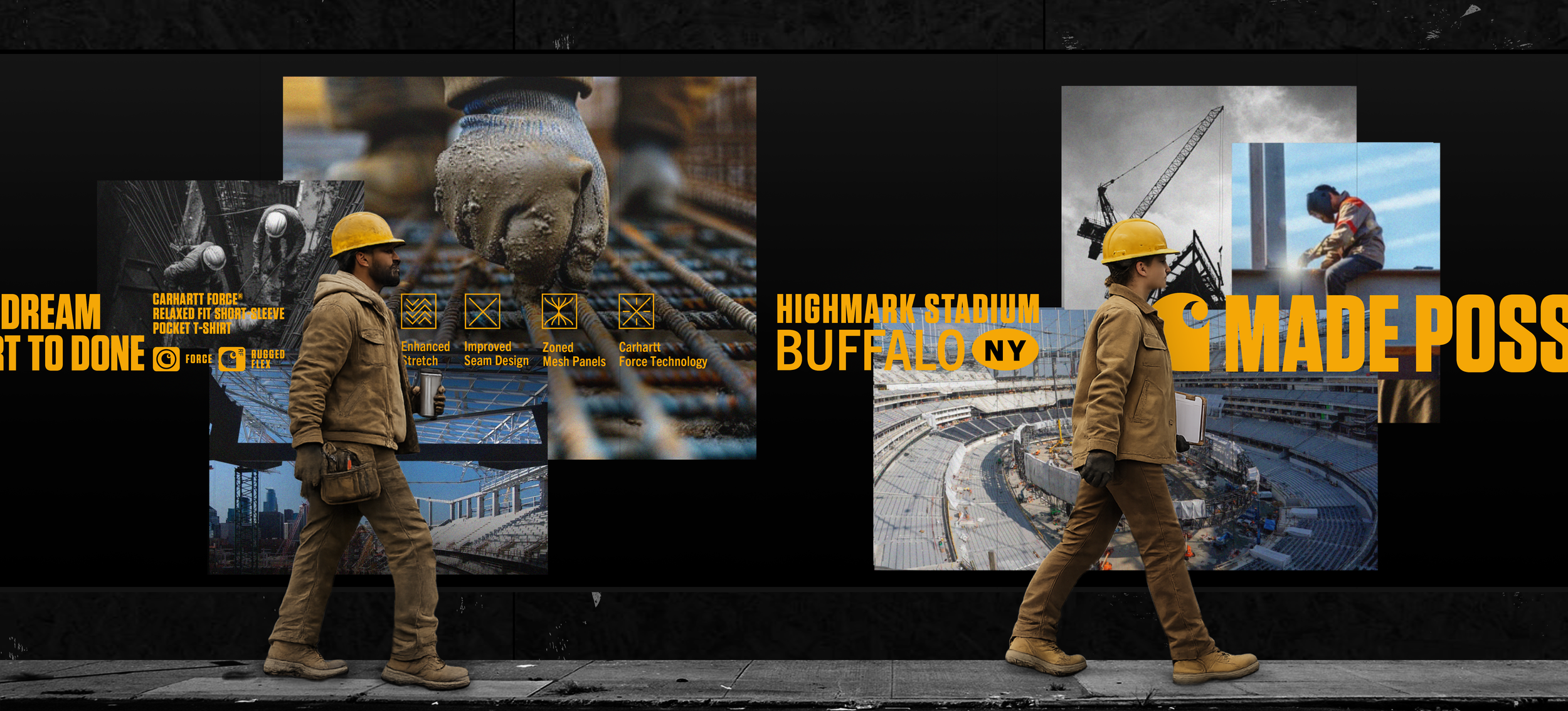 The visual language is rooted in the world of work—where things are made to be used, not over-explained. People, places, and materials become the building blocks of the story. The system’s structure allows multiple stories to coexist while staying true to Carhartt.