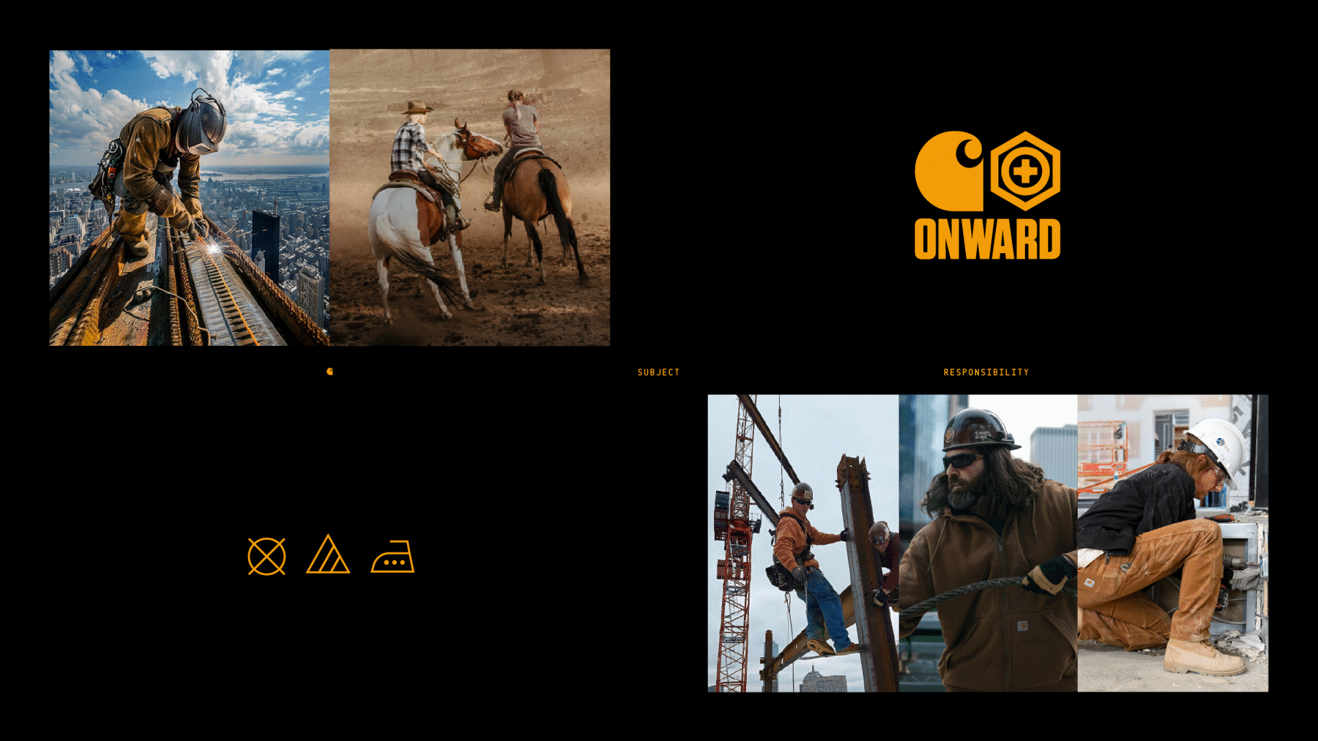 Included applications: Onward (Inclusion, Sustainability, and Community) The Carhartt Network Montana Wear Carhartt Women Chip Gaines Force™ Technology Icons